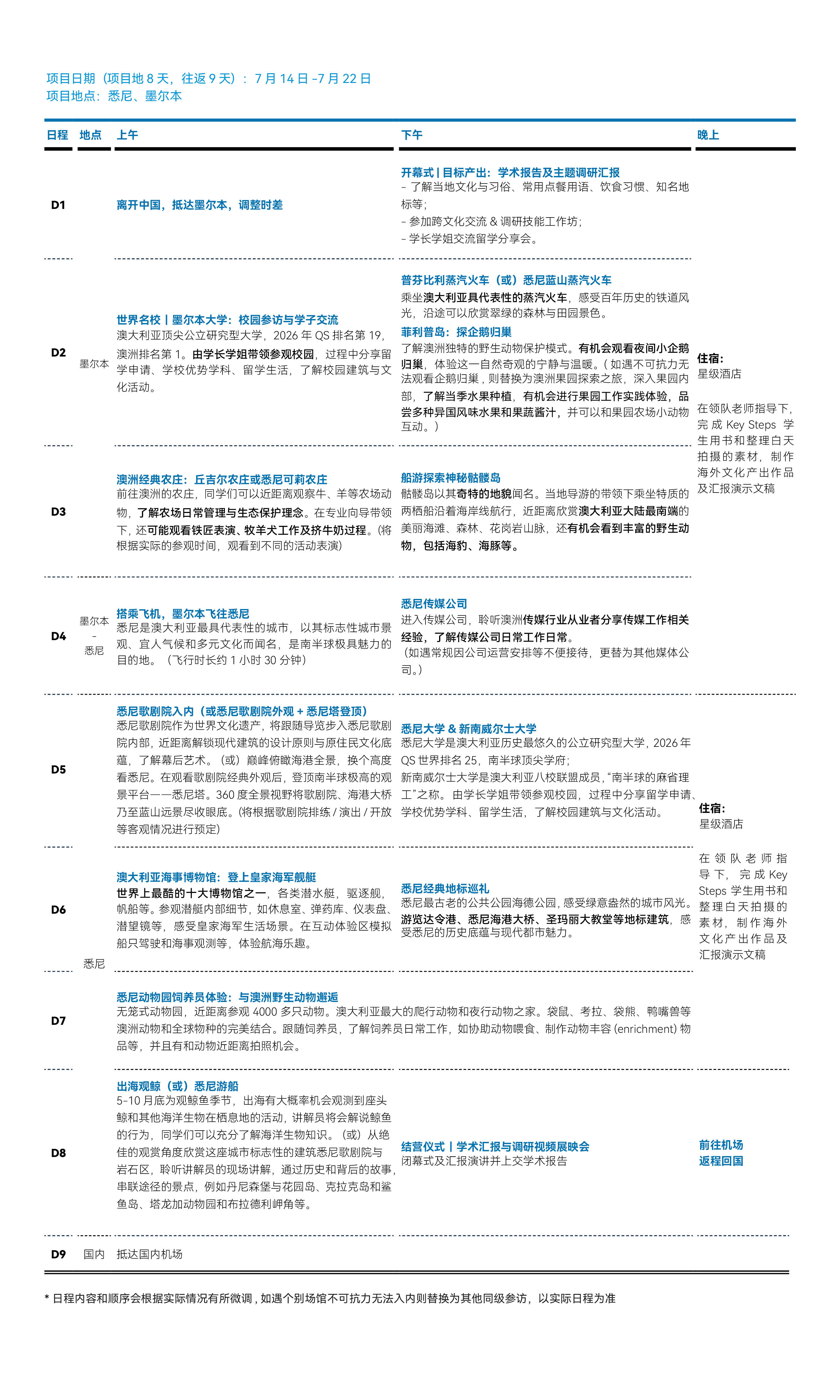 专业行前课程培训;详尽学术指导手册。