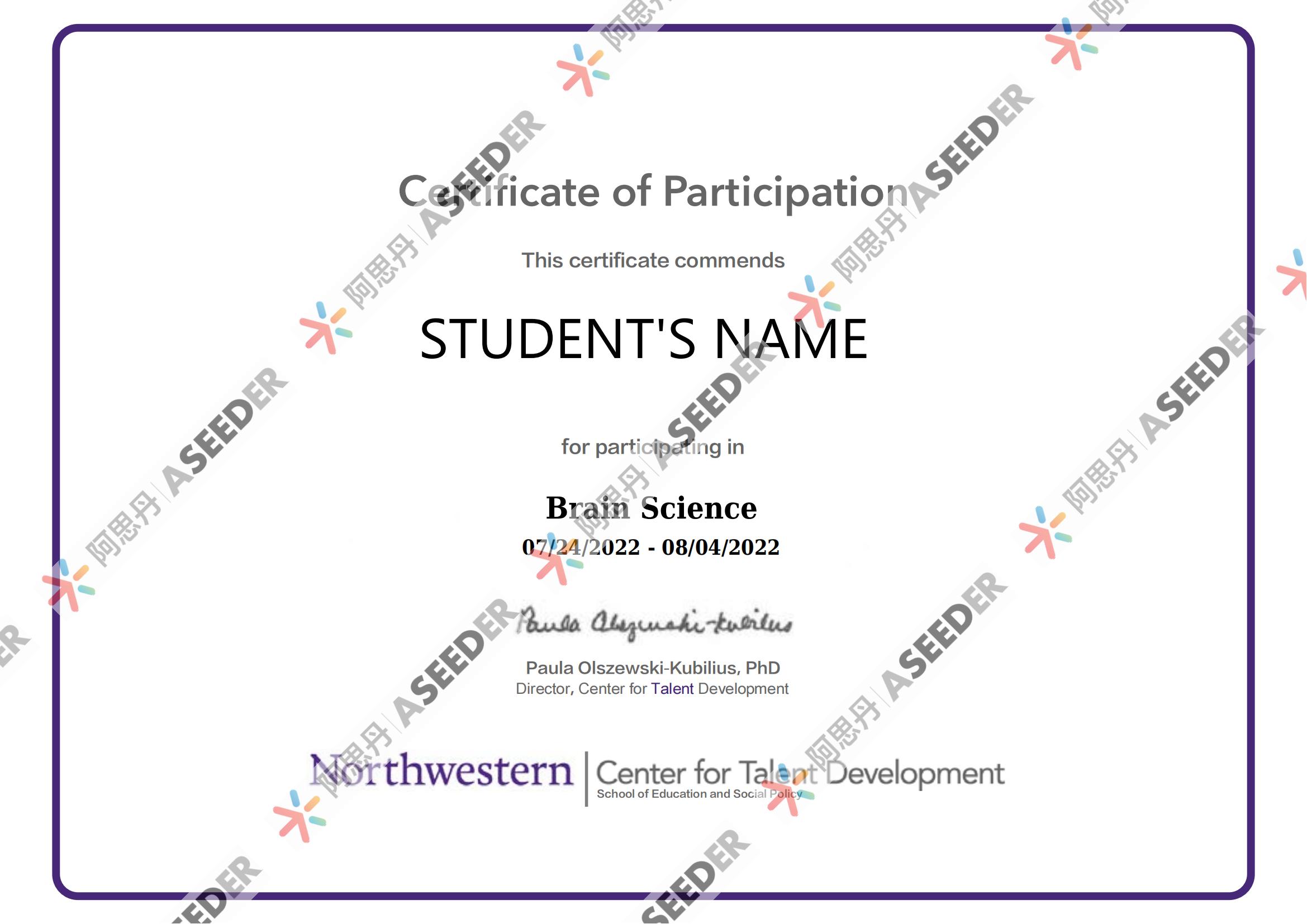 • 费用包含:CTD 西北大学少年天才营(中国站)项目课程内容费、导师学术辅导费、学术材料及道具费、教学场地使用费用、阿思丹全程带队老师服务费、项目期间保险费、 官方结业证书申请费、个性化评估报告费、双语助教费;