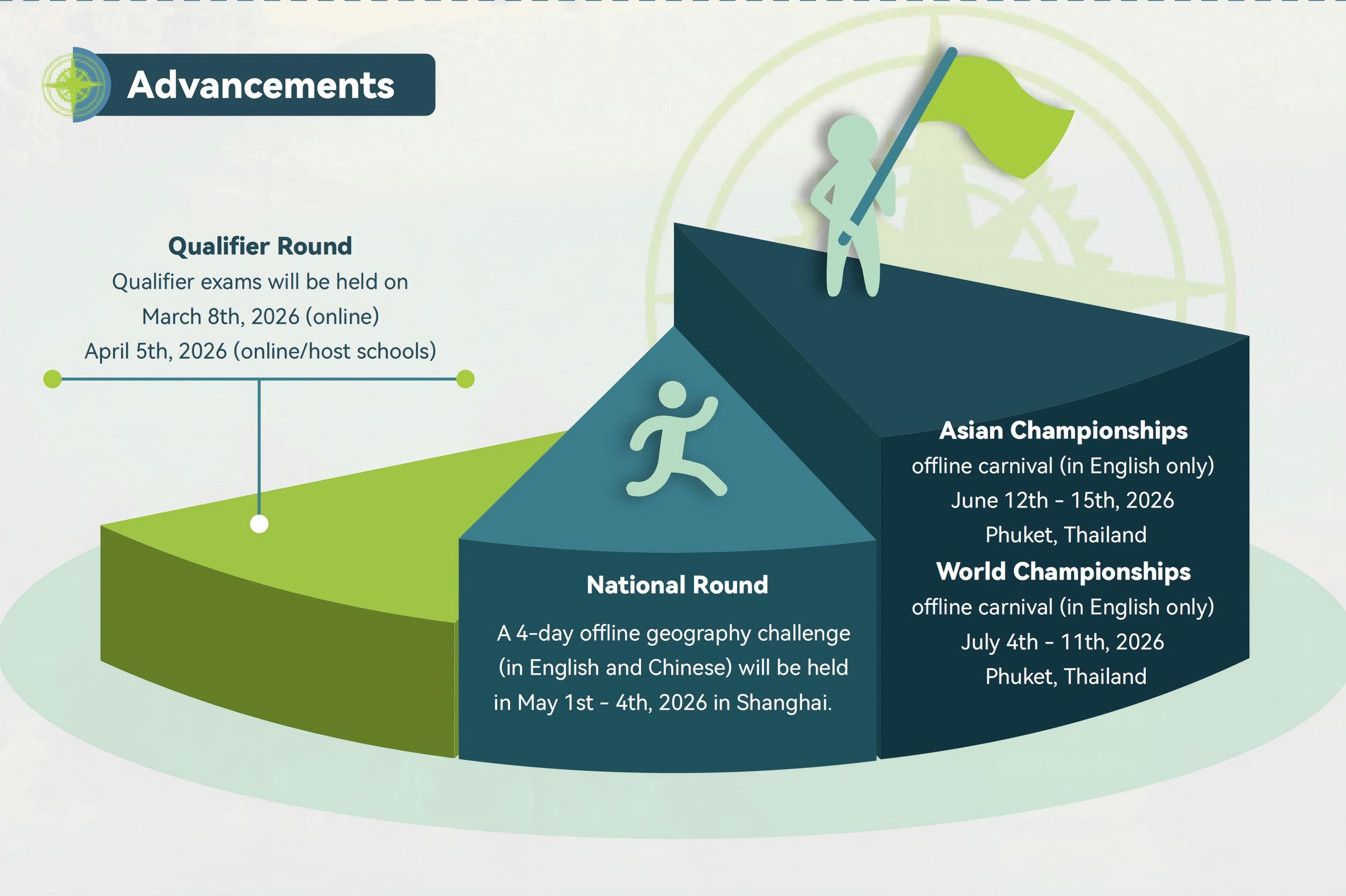 Qualified students of English Divisions from 2025-2026 National Round will be invited to the Asian Championships. It is a 3-day global geography carnival, a perfect stage for students to showcase their geography academic prowess, make friends with global geography enthusiasts, reap the rewards of honor and growth, and reach out to the world.