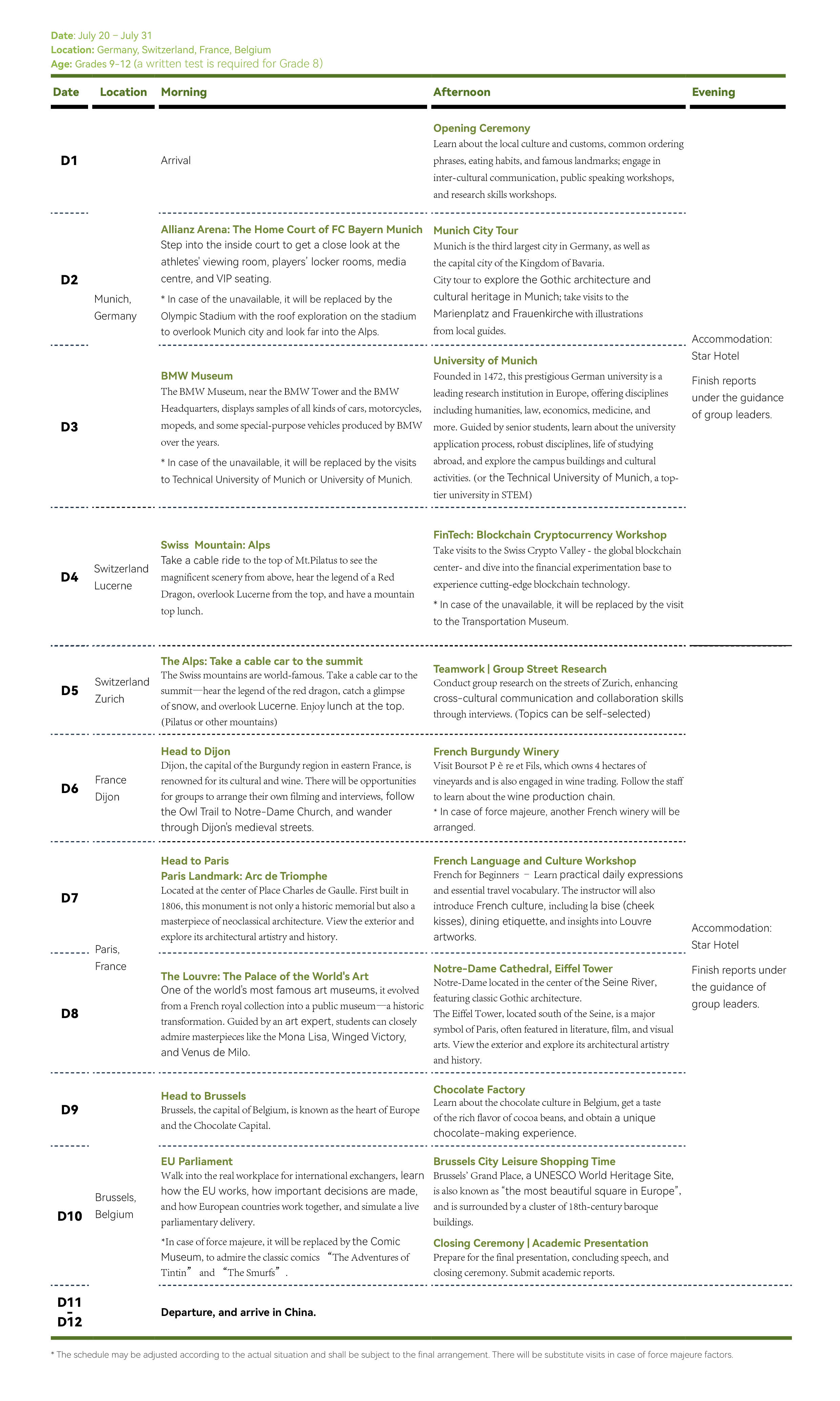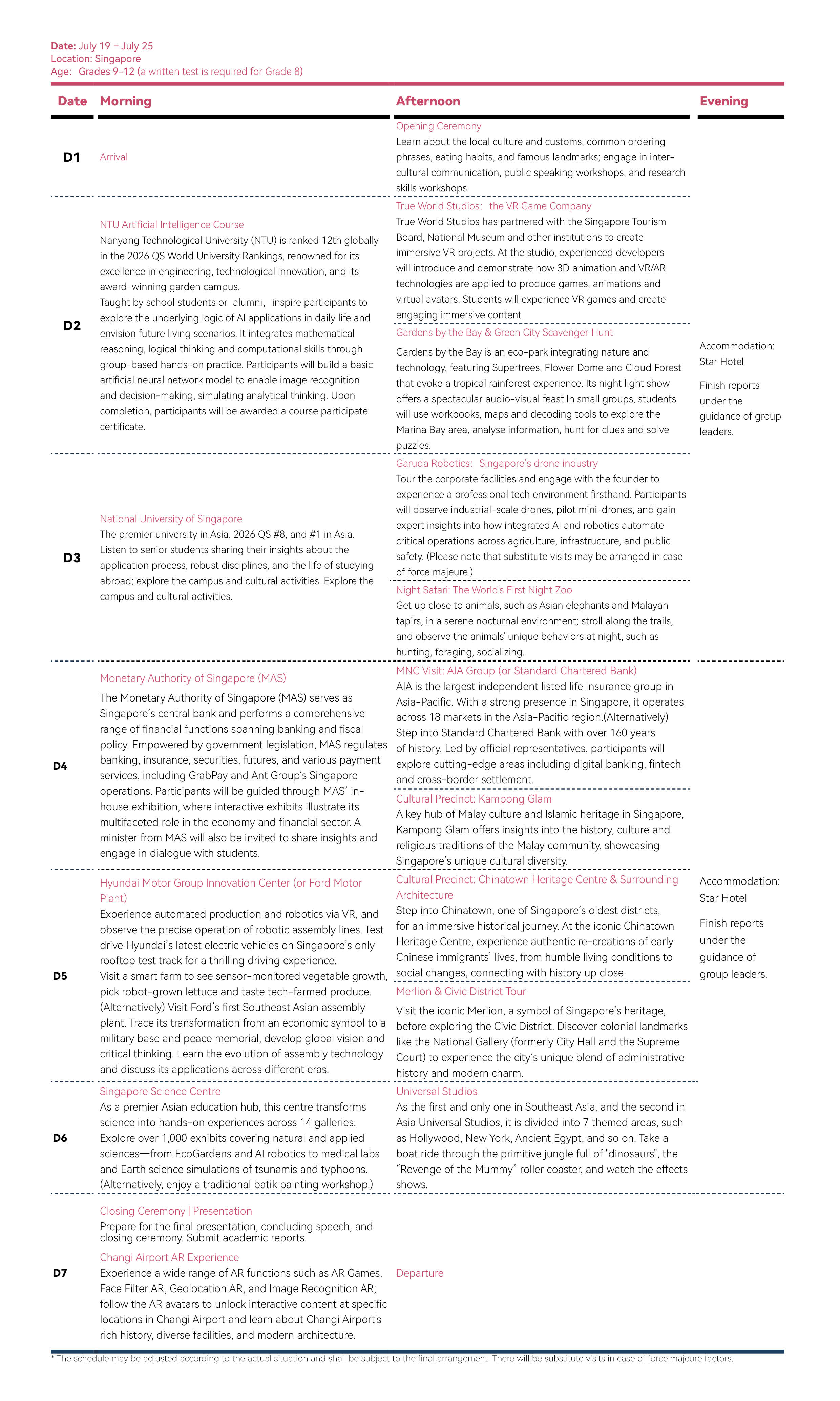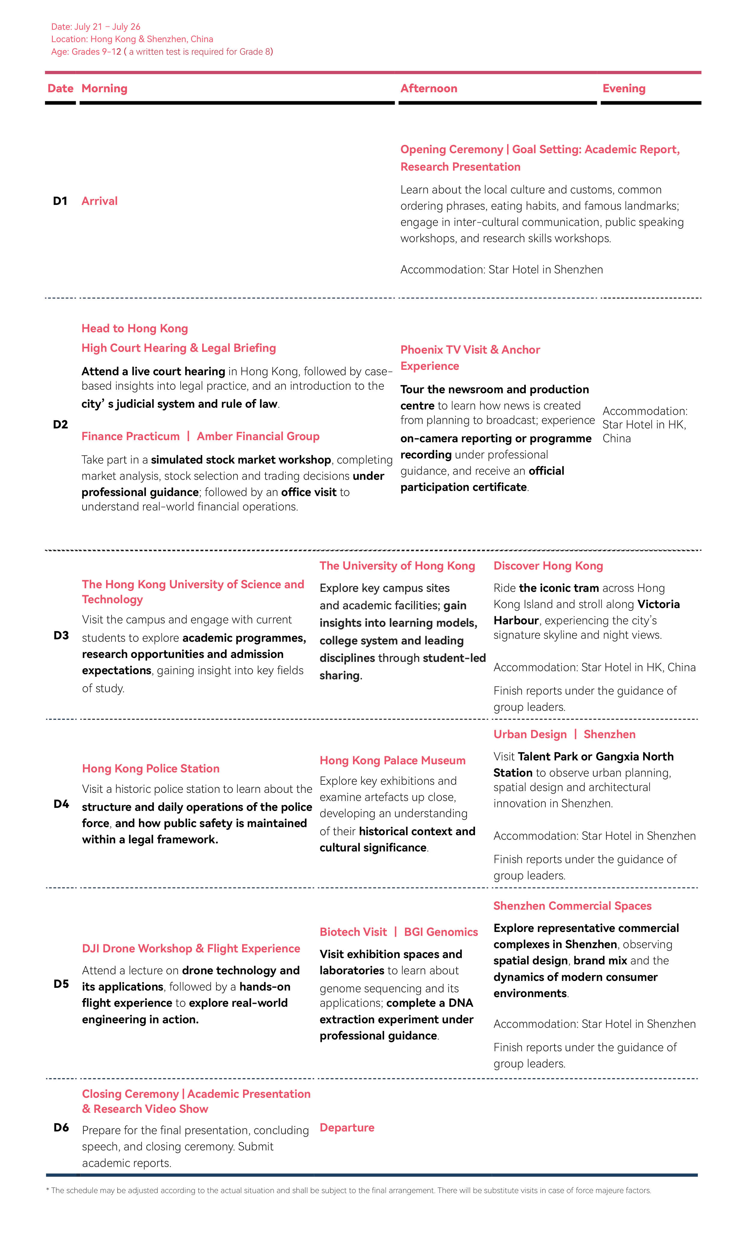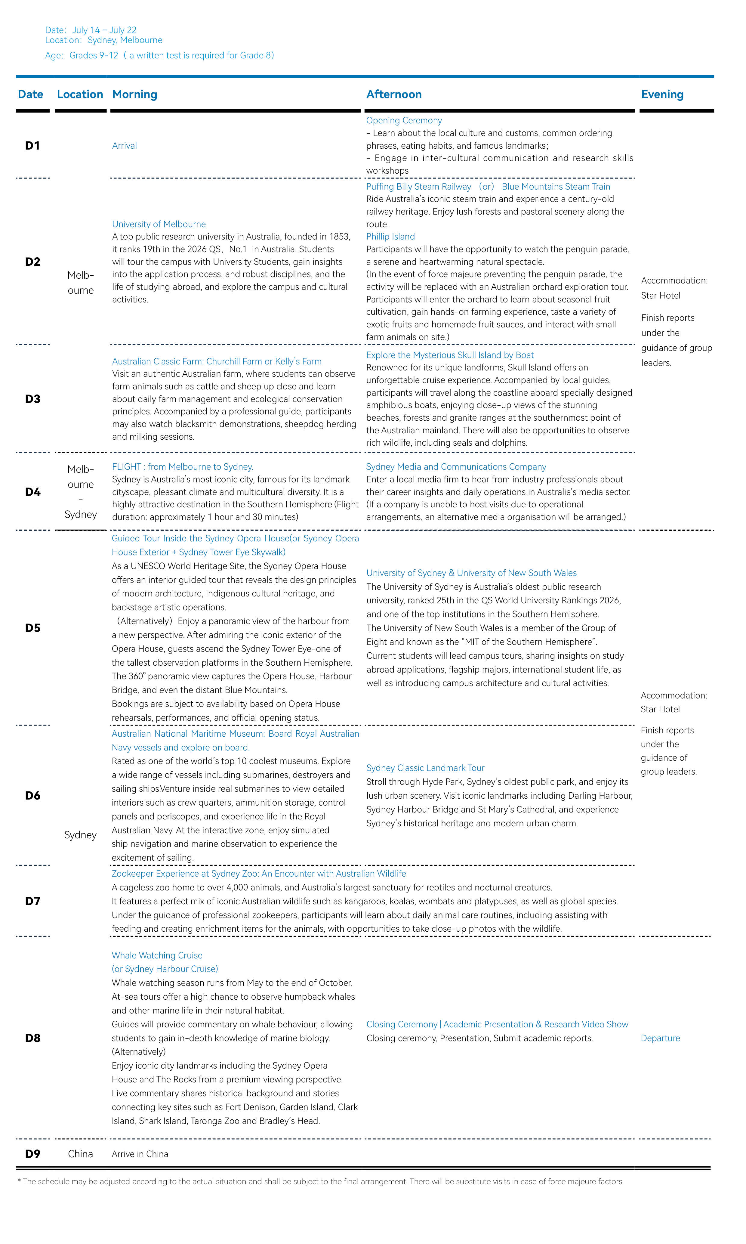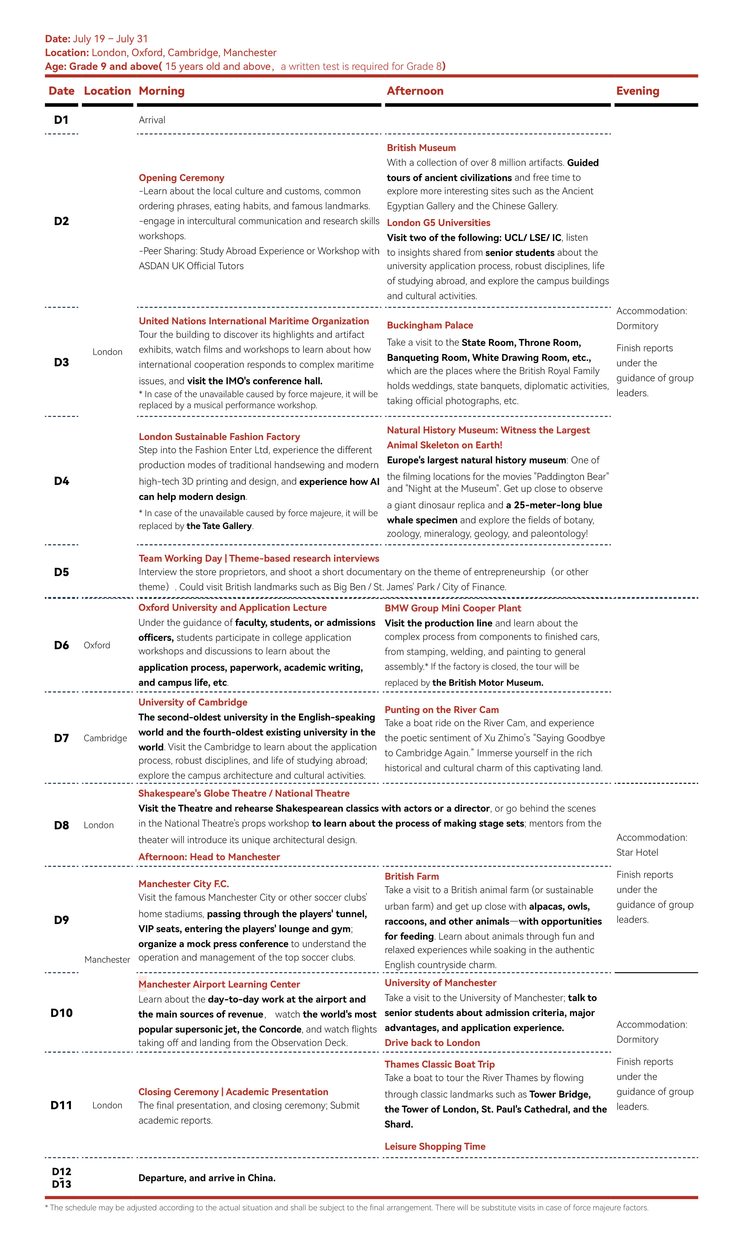 2026 | Grades 9 and over (Including junior students in grade 9; Minimum age for the UK program: 15 years old) An interview for students in grade 8 is required.