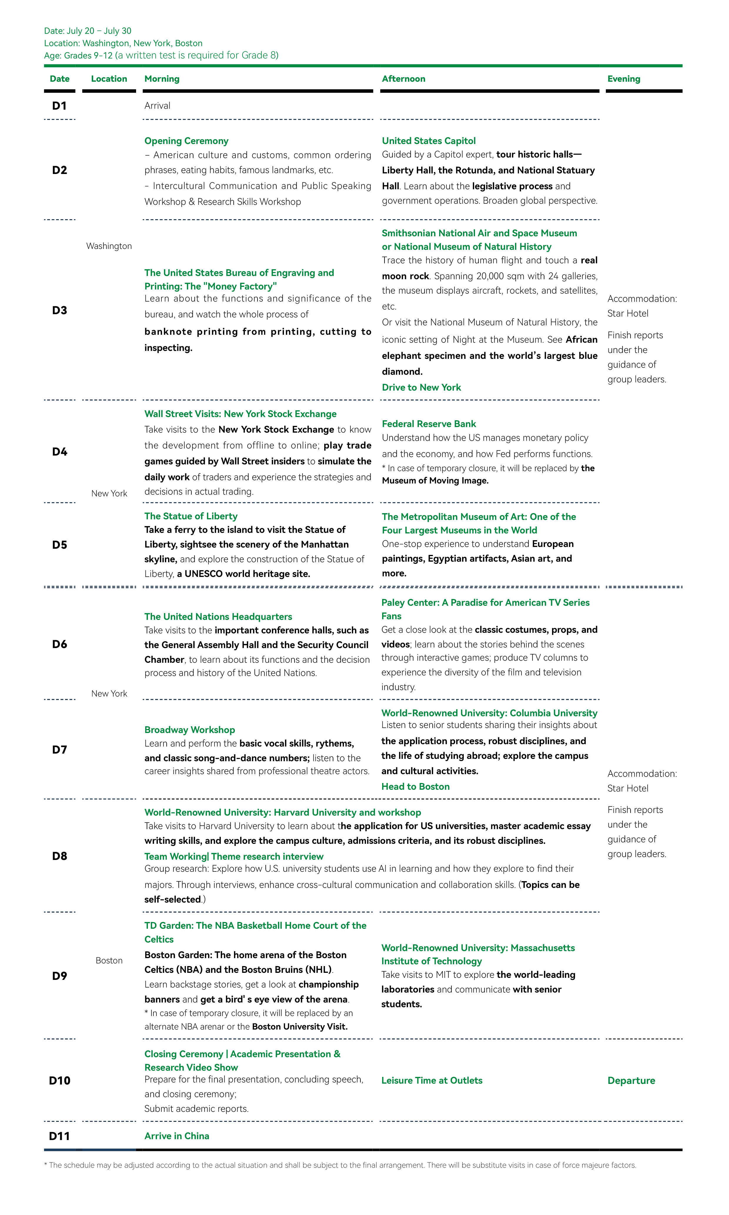 The Mini-MBA is tailored for high school students in grades 9 and over who are interested in top universities in all walks of life, English language, pre-overseas-study experience. Overseas activities and learning will focus on English communication with translation provided by group leaders (if necessary).