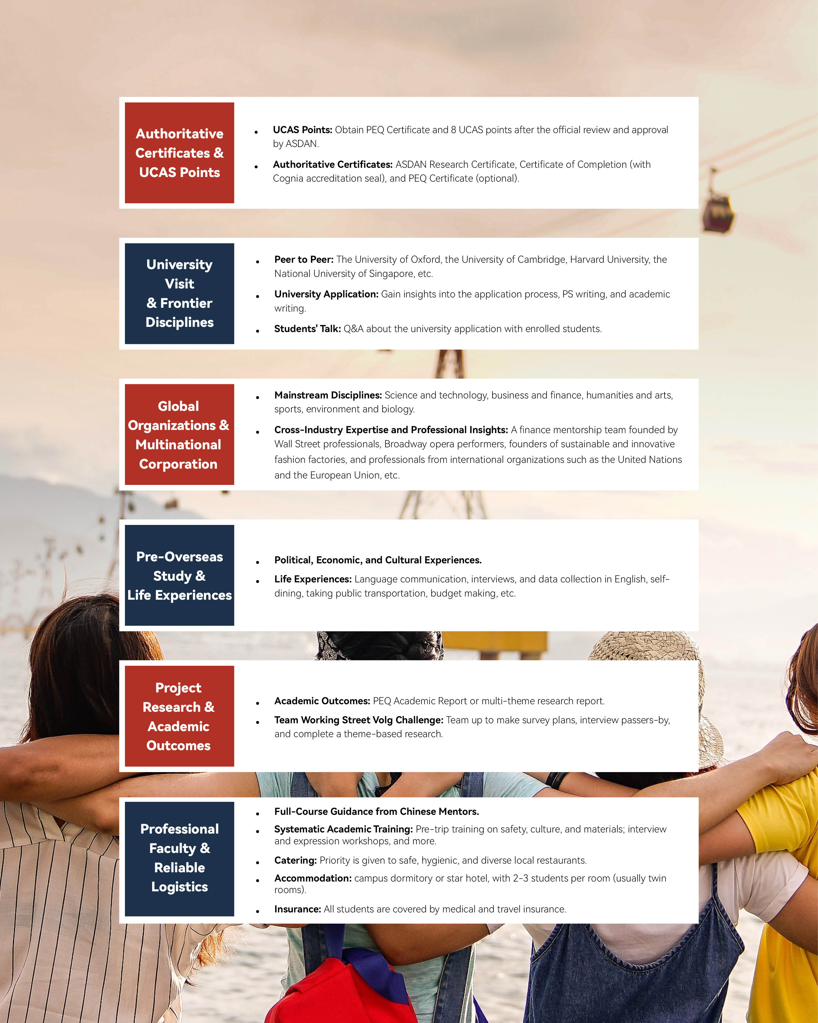 世界公民、商业研修、艺术人文、城市调研、大学体验五大课程模块