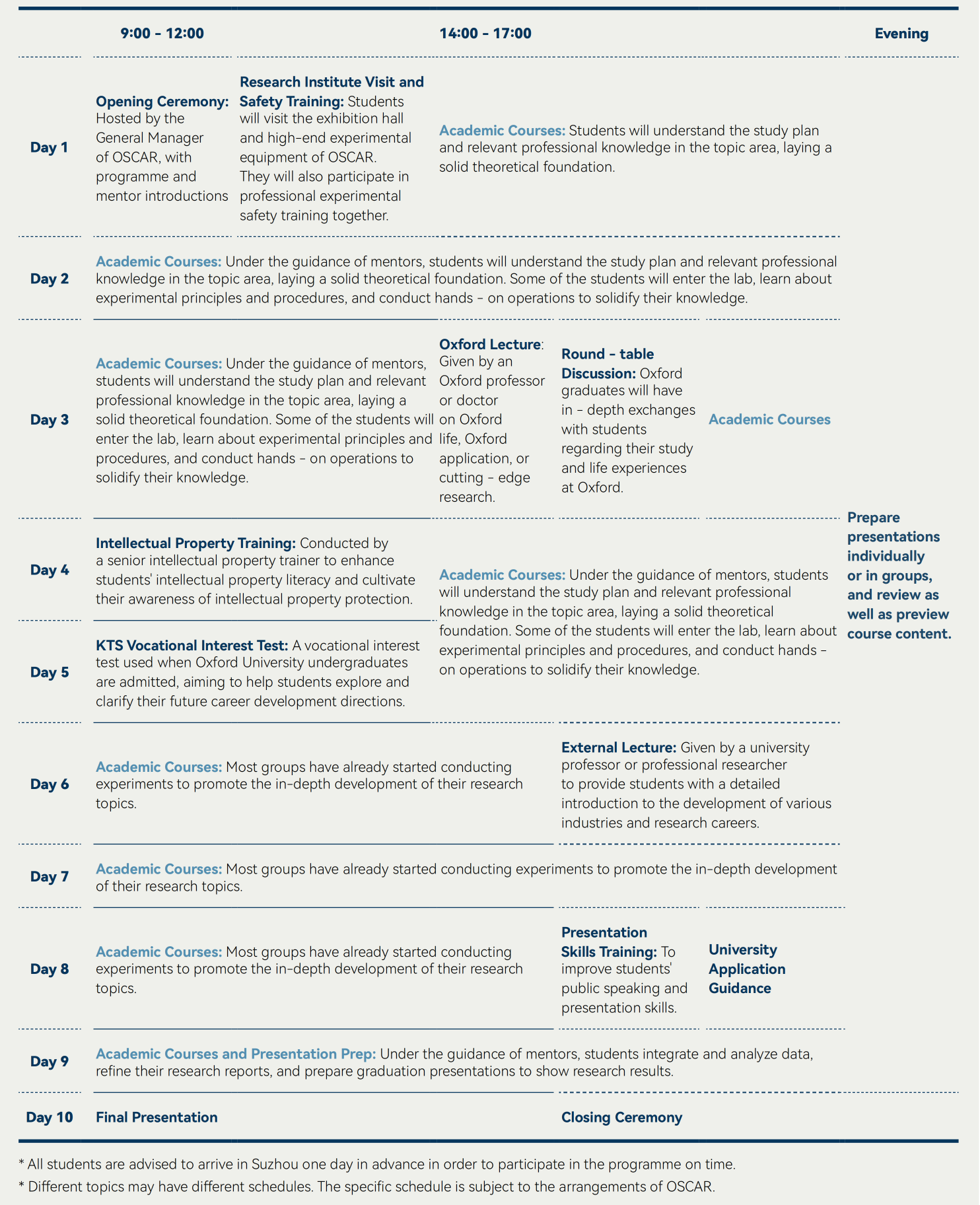 The programme is underpinned by the robust academic disciplines of the University of Oxford, providing ten elective topics in the domains of Optoelectronics, Biochemistry, Biotechnology, Low-carbon Energy, Medical Engineering, Business Innovation.