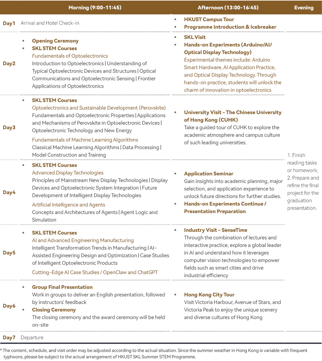 * The content may be adjusted. Please be subject to the actual arrangement of HKUST SKL Summer STEM Programme.