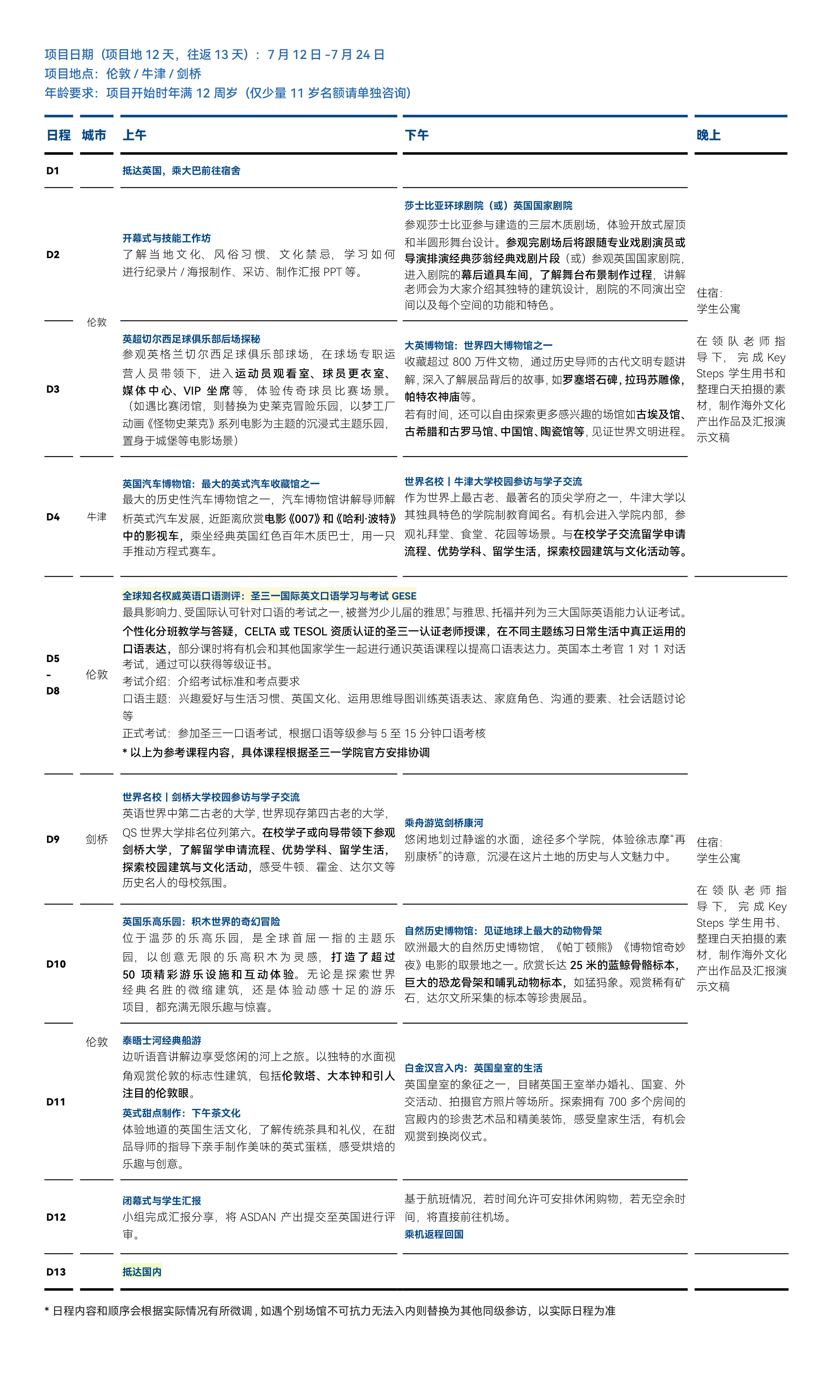 - 保险与物资:所有学生享有医疗和旅游保险,《出行手册》、团服、研学手册、转换头、行李牌等物资配置