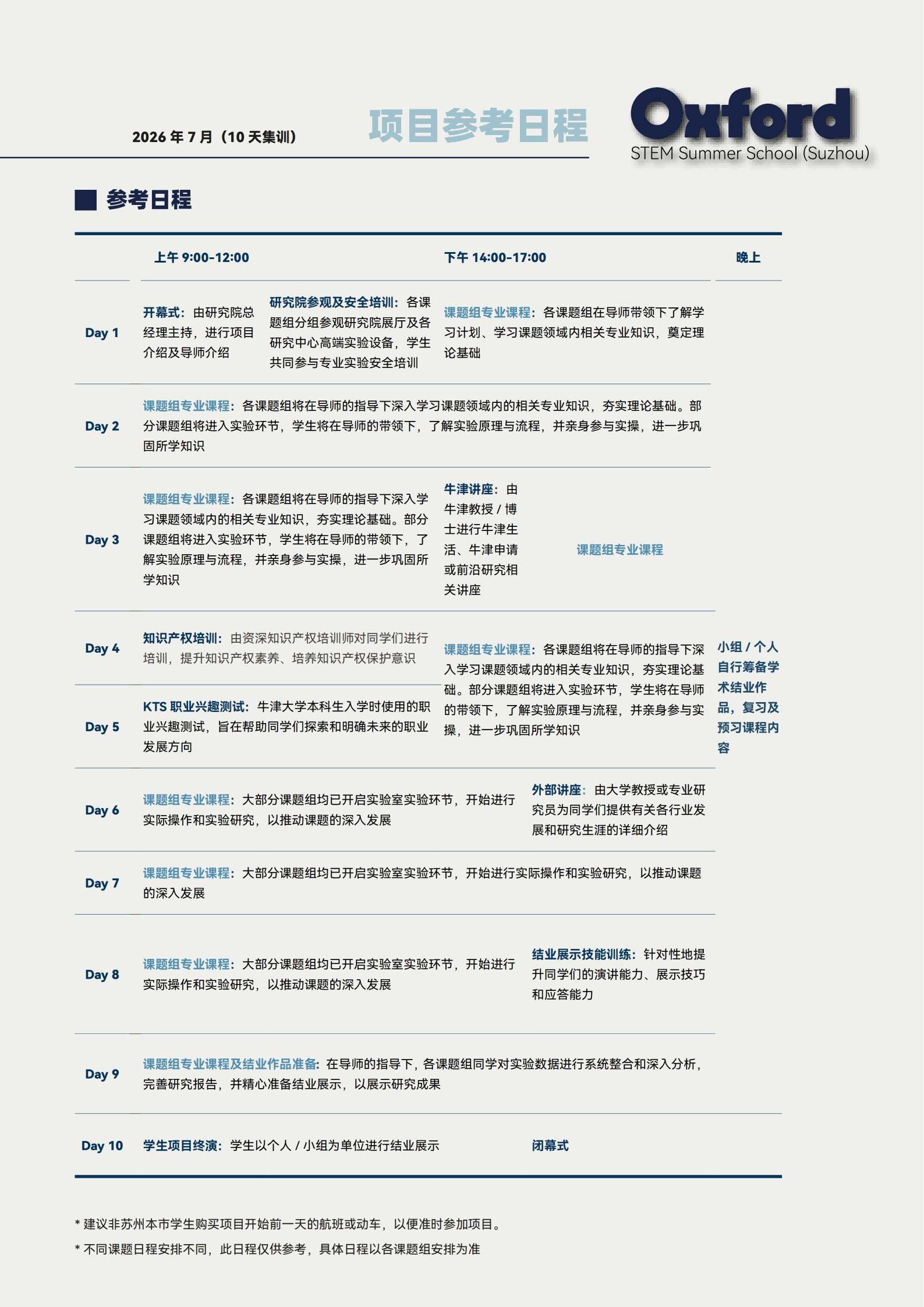 - 不包含:国内往返交通费、项目期间饮食费、酒店住宿费用(可选后勤服务方案)