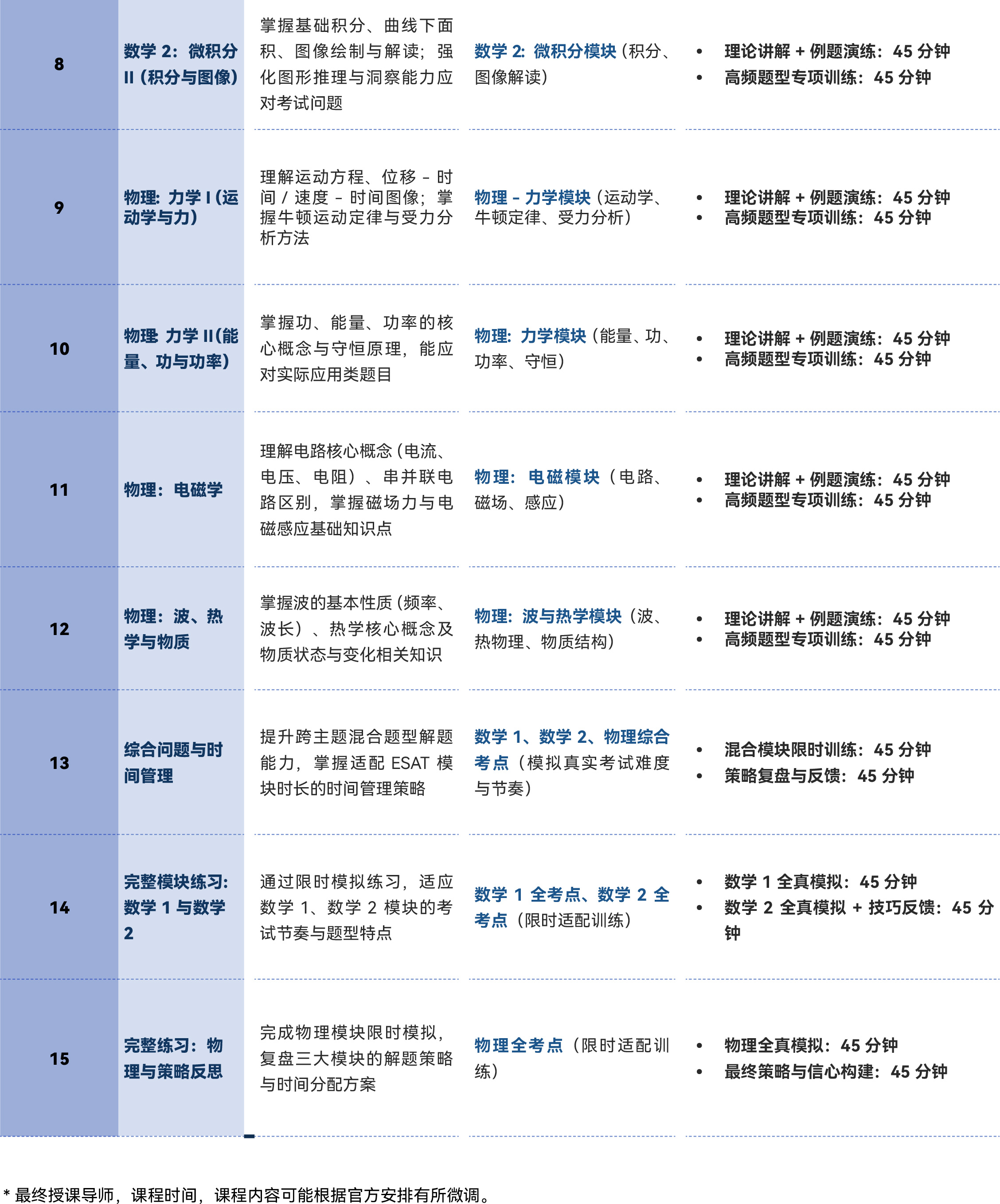 - 掌握适配 ESAT“无计算器 + 40分钟/模块限时作答”考试形式的应试技巧、分模块时间分配策略与高效解题方法,提升各模块答题节奏把控能力与准确率。